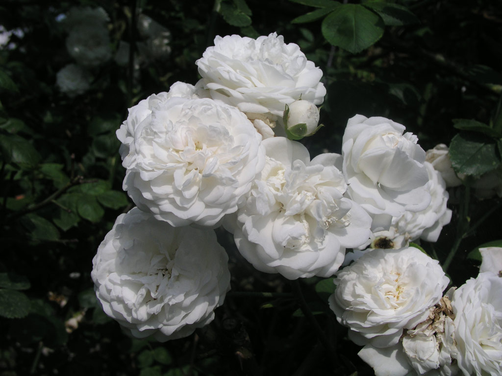Velmi plné květy čistě bílé barvy vytvářejí na keři sněhobílé kytice. Nápadně tmavě zelené olistění vhodně doplňuje habitus keře.
