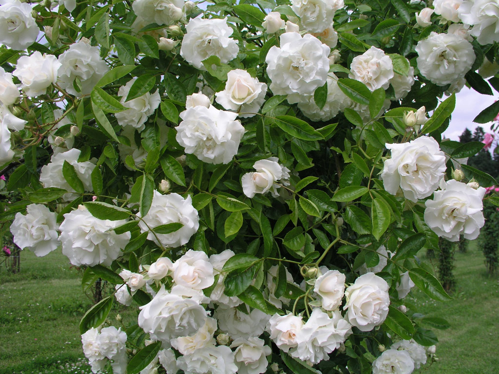 První česká pnoucí růže, květ velmi velký, sametově bílý, při odkvětu do zcela bílé přecházející, v obrovských kyticích. Z dálky květem bělostným svoji krásu hlásí.