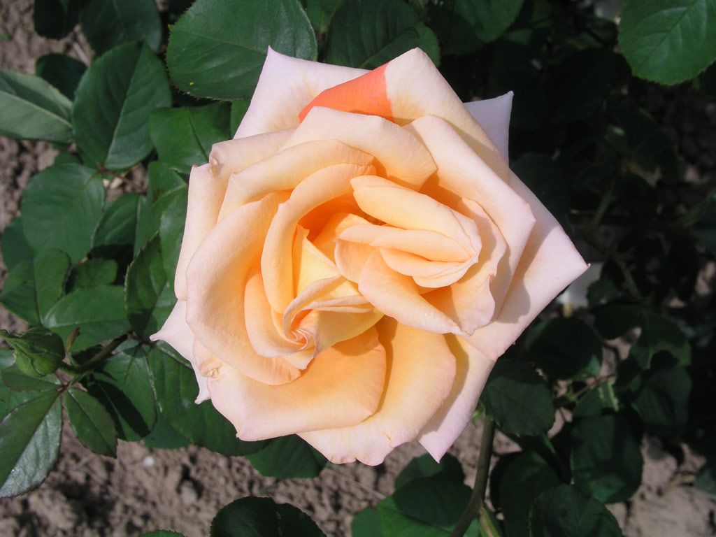 Světle oranžová bílá, oceněná ve střední Evropě, výška 130 cm, průměr květu 10 cm.